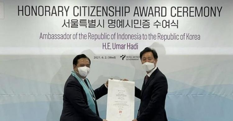 Rakyat Merdeka – Duta Besar Indonesia untuk Korea Selatan Umar Hadi mendapat gelar sebagai Warga Kehormatan Kota Seoul (Seoul Honorary Citizen), Rabu (2/6/2021).