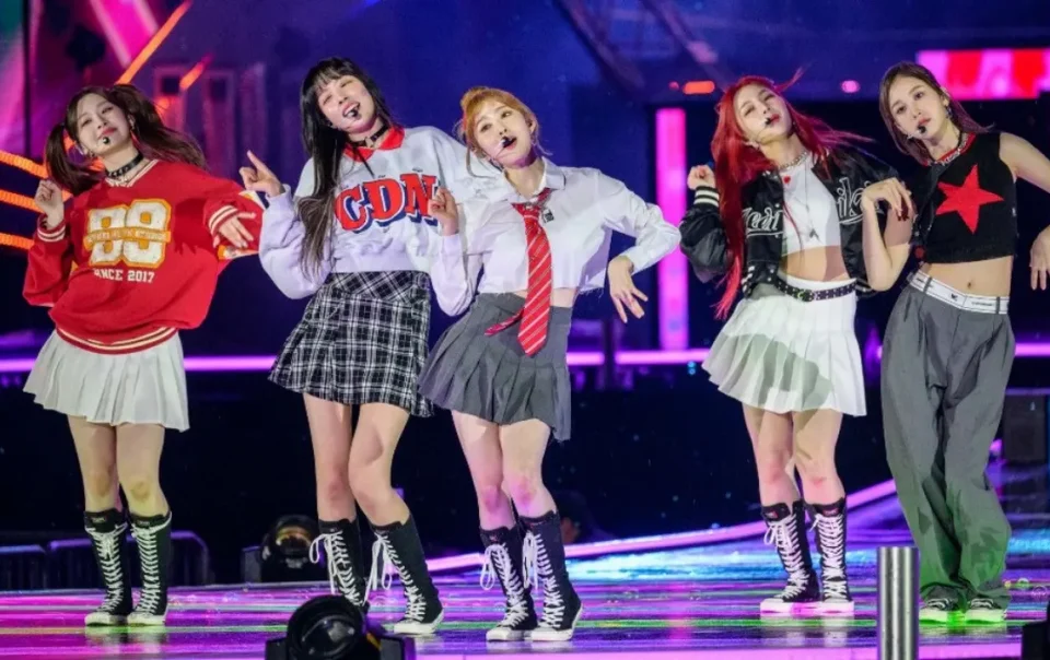 Grup K-pop Korea Selatan, STAYC, tampil dalam konser K-pop sebagai bagian dari Seoul Festa 2023, di stadion Jamsil di Seoul, pada 30 April 2023 (ANTHONY WALLACE/AFP) Liputan6com, Jakarta...